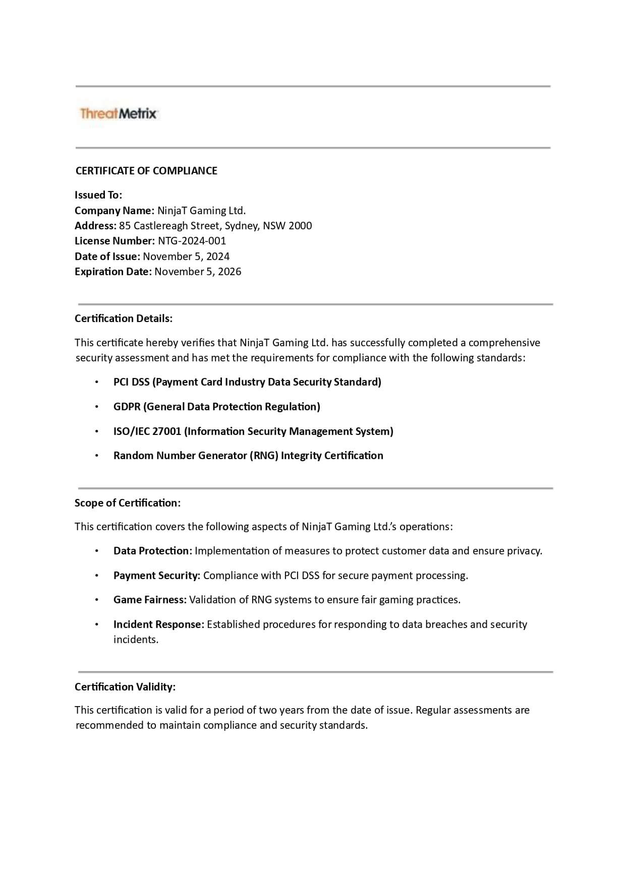 Our mission is to deliver a premium online gaming experience that combines entertainment, security, and responsibility. We are dedicated to offering innovative and immersive gaming options while prioritizing player safety and well-being. Through rigorous regulatory compliance, transparent practices, and a commitment to responsible gaming, we create a trustworthy platform where players can enjoy their experience with confidence. Our focus is on building lasting relationships with our players, fostering community engagement, and contributing positively to the wider gaming industry.